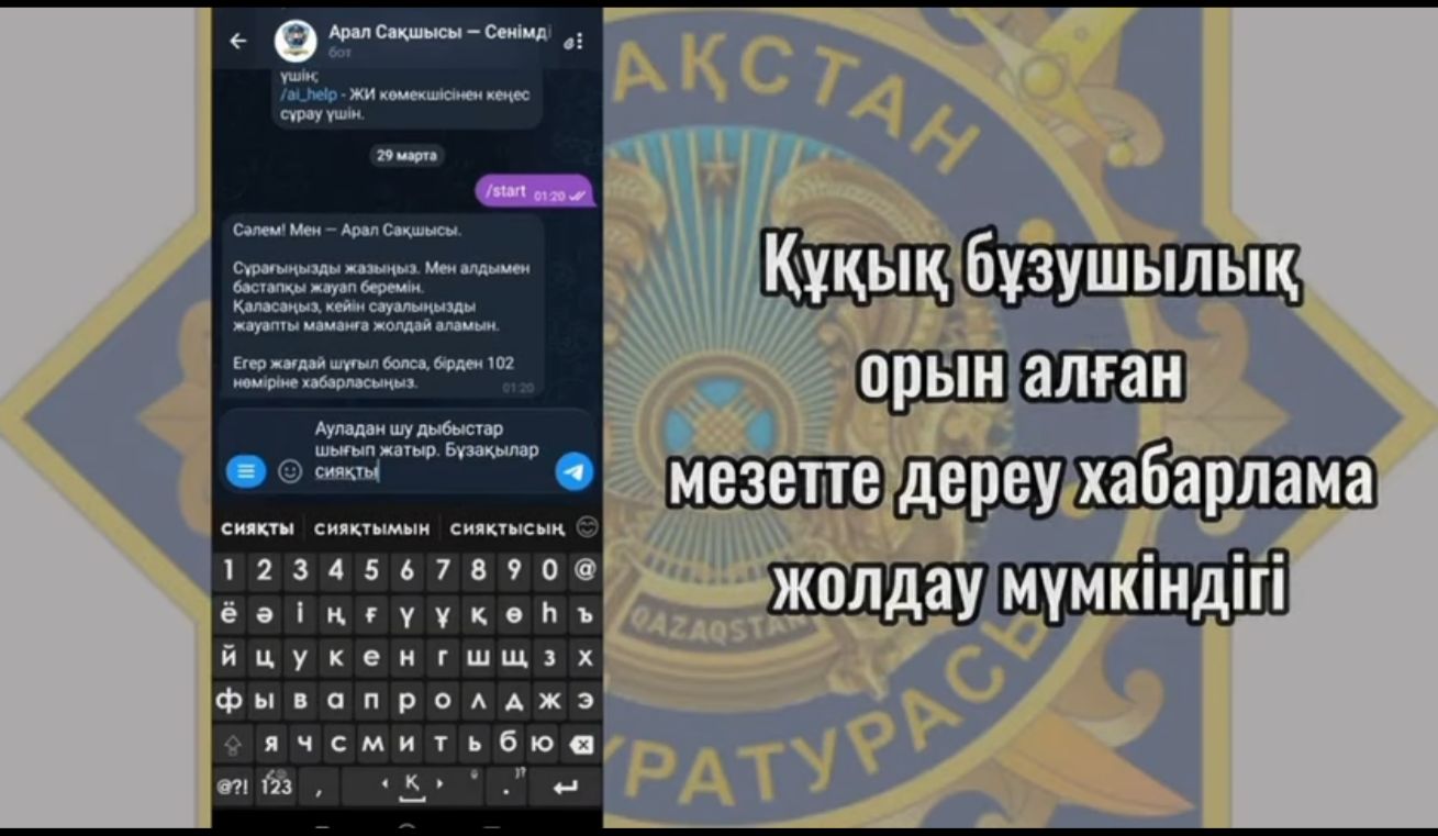 «Арал сақшысы» чат-боты – заманауи цифрлық шешімдер арқылы қоғамдық қауіпсіздікті қамтамасыз етуге бағытталған тиімді құрал.