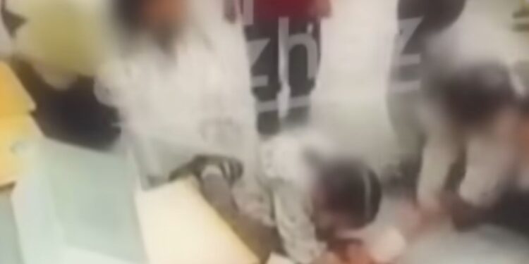 Бейнекамераға түсіп қалған жазбадан баланың бірі қызды еденге жығып, басқа балалардың оны кезекпен келіп ұрып жатқанын көруге болады. Бүлдіршіндер бір-бірлеп келіп, соғып, итеріп жатқанда 3 жасар қызды басқа балалардан тәрбиешісі арашалап қалған.