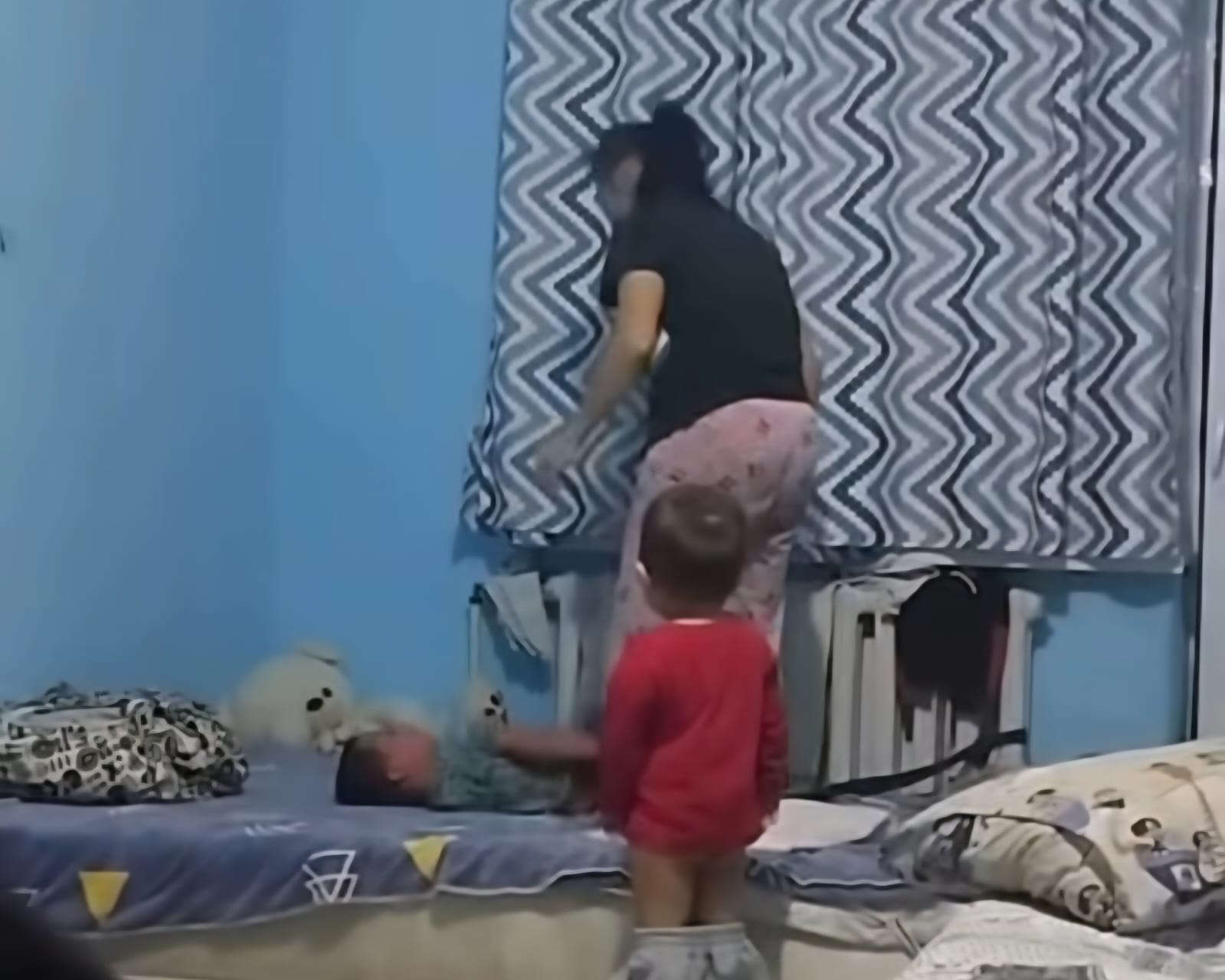 Видеода келіншек өзінің 4 жасар үлын жылу батареясына байлап, асқан қатыгездікпен ұрып-соққаны көрінеді. Тіпті бүлдіршінді балағаттап, тепкілейді....
