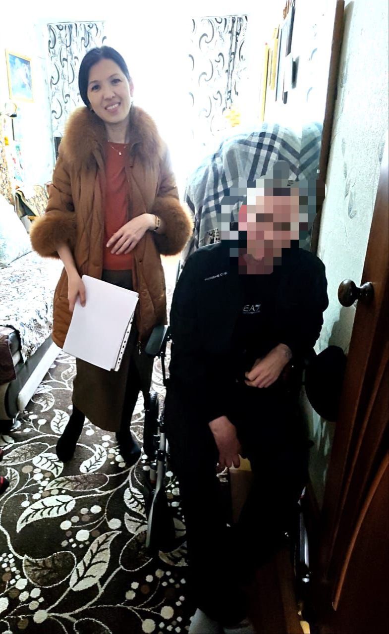 Аталған азамат денсаулығына байланысты еркін қозғала алмайтындықтан, күнделікті тұрмысында көптеген қиындықтарға тап болған. Пробация қызметкерлері жергілікті мекемелермен бірлесіп, қажетті құралды алып беруді ұйымдастырды.