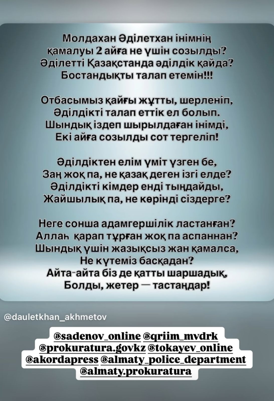 Заңгер Молдахан Әділетханның ағасы әділдік талап етуде.